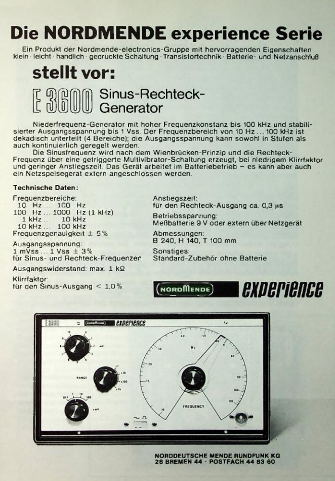 Anstiegszeit: für den Rechteck-Ausgang im unteren Frequenzbereich < 0,1uS, im oberen Frequenzbereich 0,3uS